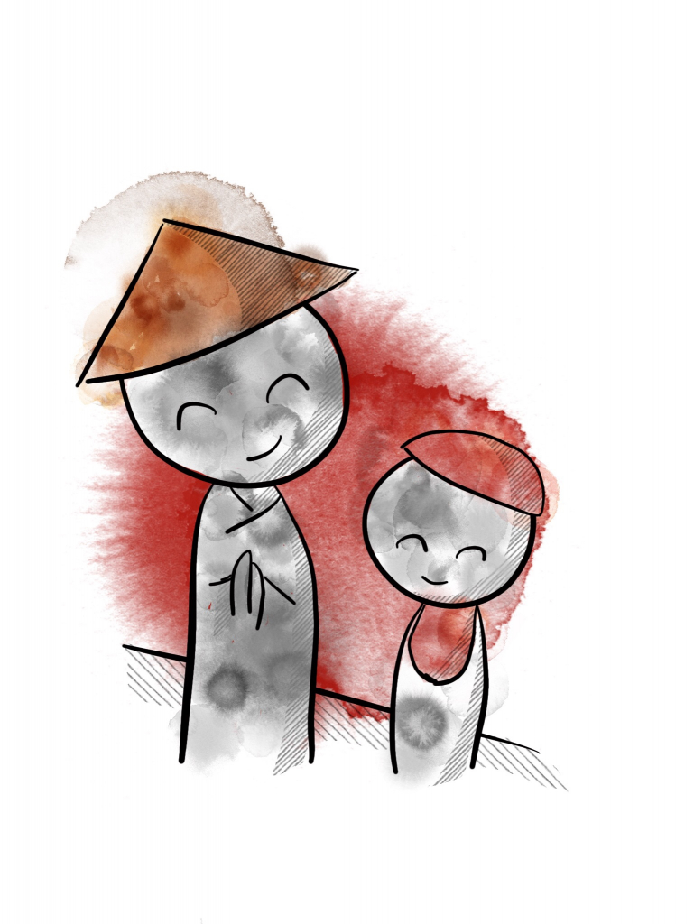 Se cree que el Jizo salva a estas almas de tener que volver a apilar piedras en la ribera del río como condena ocultándolos de los demonios en su ropa y permitiéndoles rezar mantras.